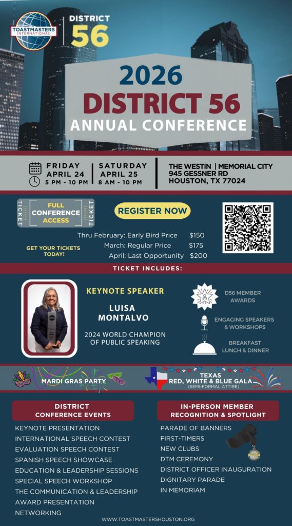 In District 56, special annual awards are presented to Toastmasters in various roles for their contributions throughout the year.