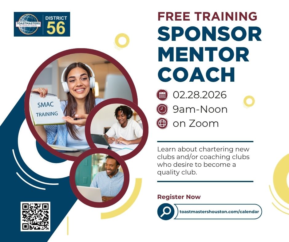 We appreciate your interest in serving as a Club Sponsor, Club Mentor, or Club Coach for District 56 Toastmasters clubs during the 2025-2026 year.